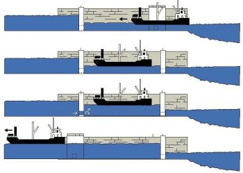 Along the route, we had to do locks. In order to make the canals usable in both directions, locks were placed along the canal to stop the flow of water. Locks are pairs of dams that can be open and closed in such a way as to allow boats on the canal to go uphill or downhill.