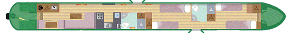 Our boat was 64 feet long. It had two sleeping areas with two single beds each, two toilets, a kitchen area, a dining area, a small bow deck and a stern deck with the driving controls. The boat allegedly slept up to 8 if the beds were set up in the right way, so it felt spacious for four people. It was not too long as to be a problem to drive, though I felt that a smaller boat would have made for easier manouevrability. The facilities were in great condition, and there was a lot of helpful equipment on board (microwave, cooking hobs, oven, fridge, etc.).