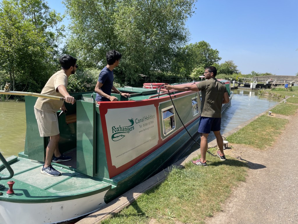 Even without the need for a license, boating is an activity requiring undivided attention and various skills that have to be developed. One incredible aspect of our trip was the willingness of passerbys and residents along the canal who were willing to stop and help us through whatever situation we were in. On the first evening we were trying to moor (i.e. “park” the boat) at a canalside pub for the night. A gentleman enjoying his summer evening at the pub came from quite a distance to help us bring the boat in. He taught us a sequence of manouevres that help turn the boat in place. He also guided us on how to pull the boat in using ropes and tie it to the bank. We used the lessons he taught us throughout the rest of our trip.