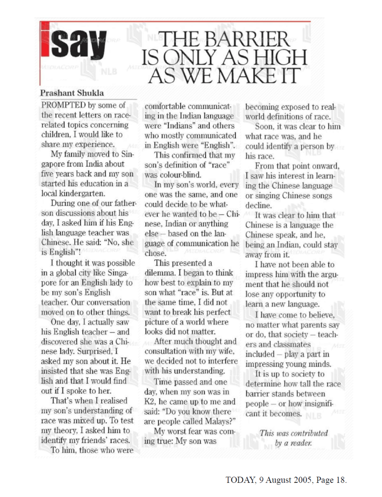 I would like to repost a reader submission from my father that was published 19 years ago in TODAY newspaper. He writes well, and I hope he will write more soon.